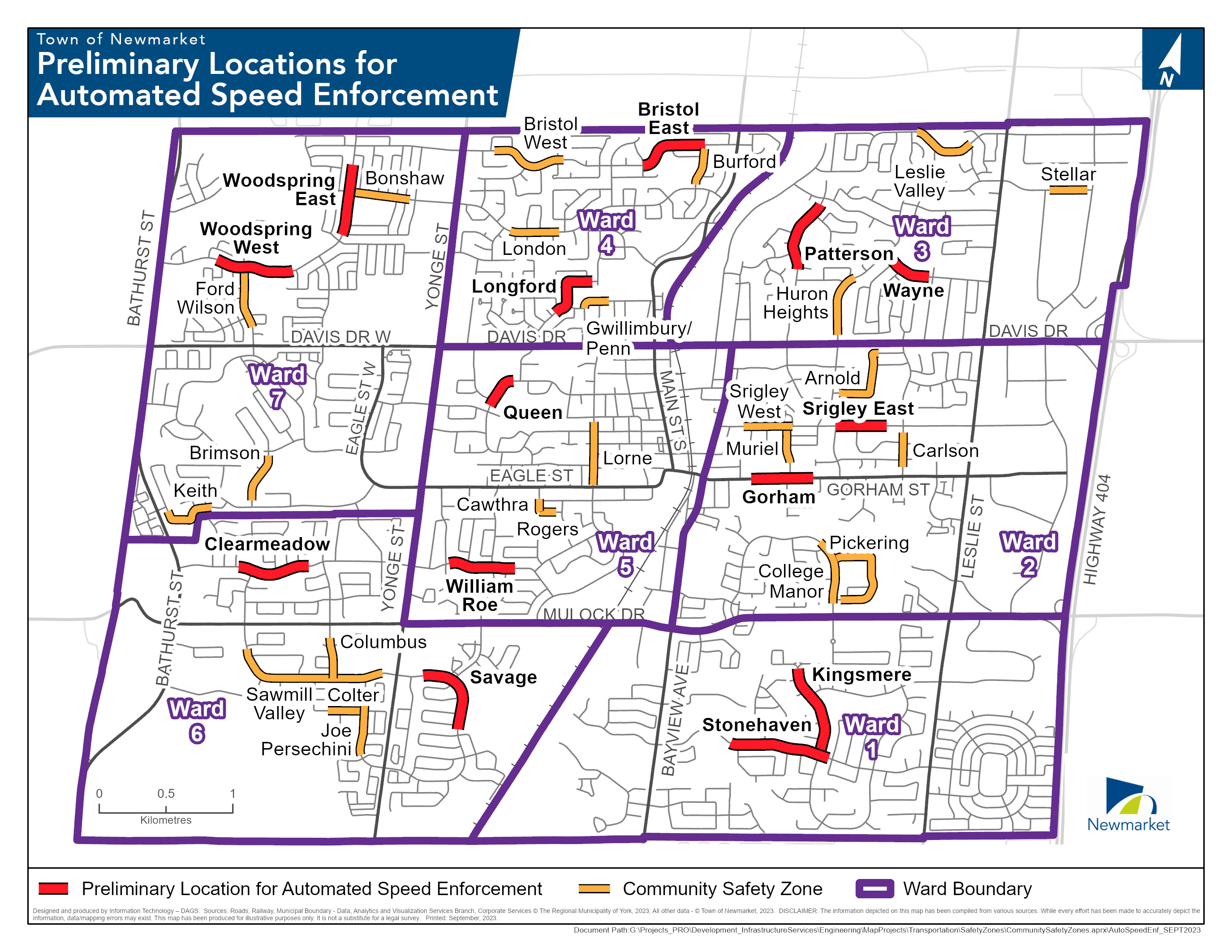 For more a more information on location of the speed cameras and other Community Safety Zones in Newmarket, please view this map.