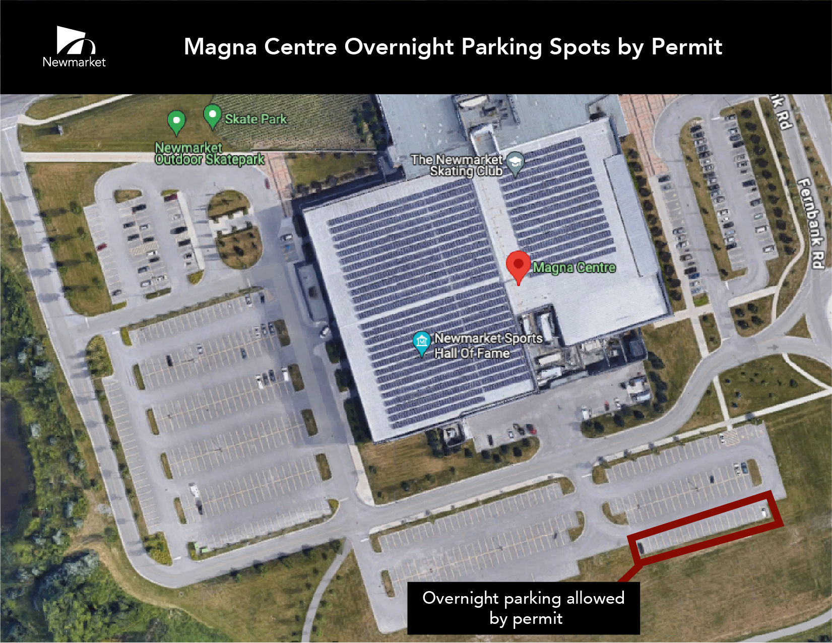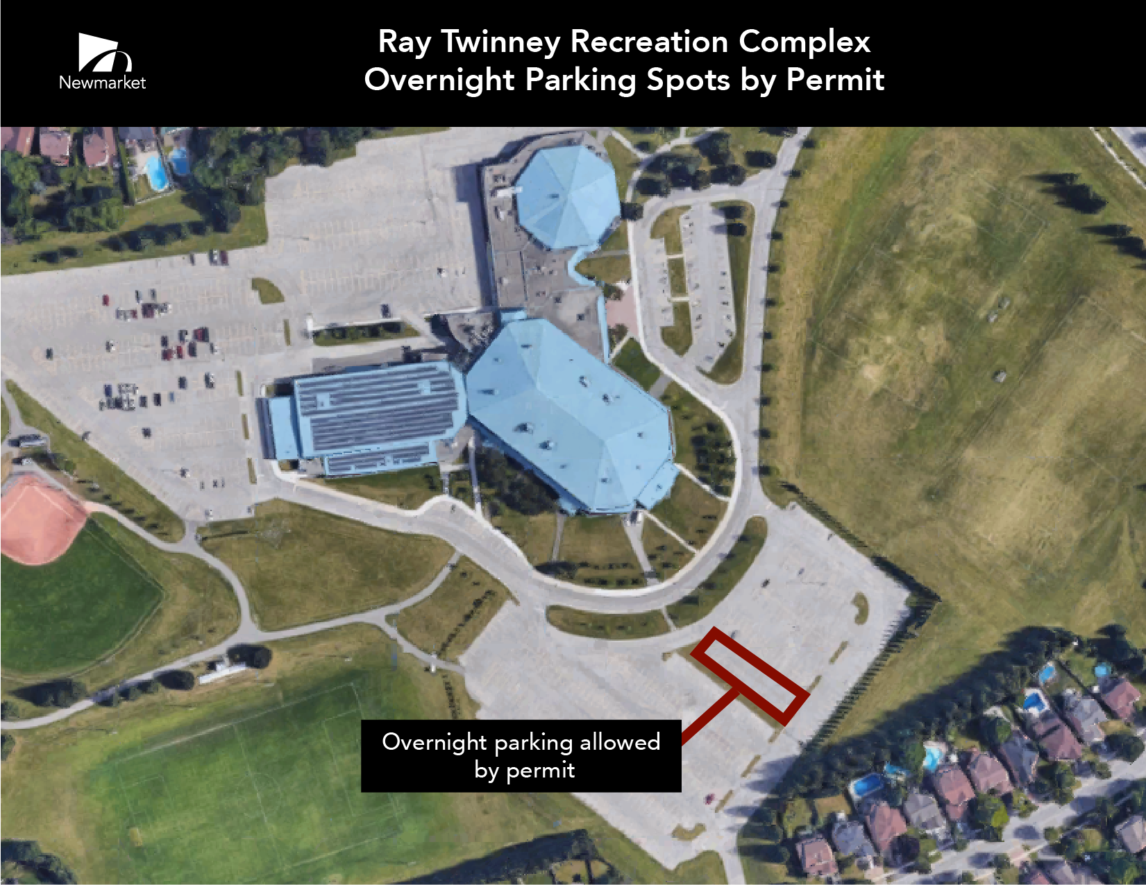 All residents are eligible to apply for and obtain a temporary parking permit through the Town's online parking portal at parking.newmarket.ca by providing their vehicle information. With the free permit, drivers can park in designated spaces overnight from 5 p.m. to 7 a.m. the following day. By 7 a.m. vehicles must be moved to give way to snow clearing of the lot, and to open the space for daytime use.